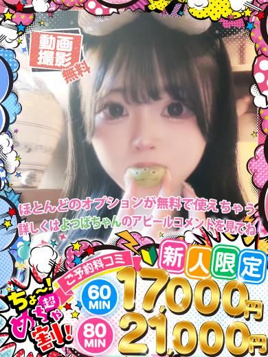 出勤確認中でちゅ💋 よつば 19歳 T155・B84(D)・W57・H87 19歳・最強ロリ・完全素人